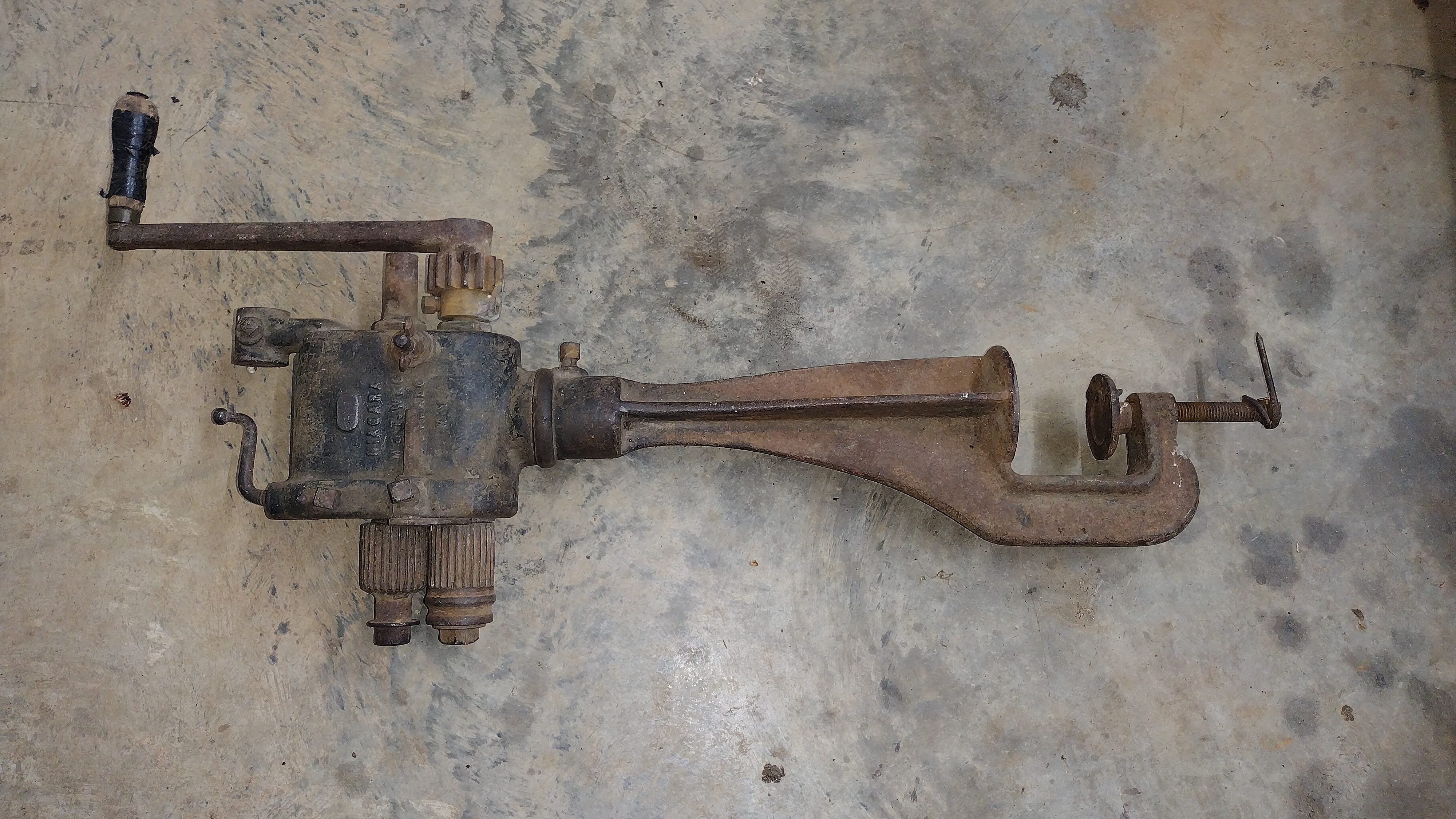 *Vintage Niagara M&T WKS Metal & Tool Works Sheet Metal Stovepipe Crimper and Bead Roller w/ Stand. Antique